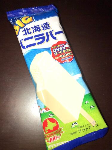 ロッテBIG北海道バニラバー 80点 超シンプルなバニラのバーアイス。 僅かに華奢な歯触りからガッシリとした歯応え、舐めて溶かすも、囓り取るも自由自在、囓り取る派の私はモキモキとした食感を豪快に頬張り、砕きながら流し込んでいく。 バニラの風味やコク…