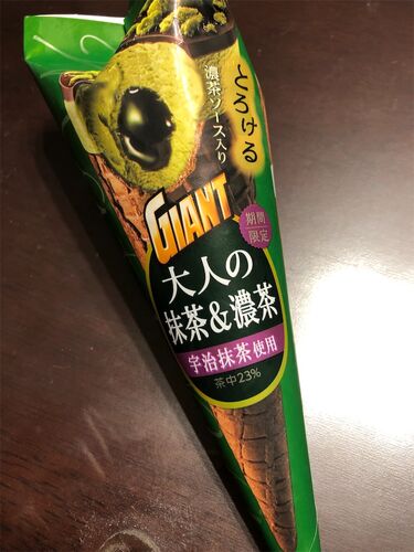 江崎グリコジャイアントコーン 大人の抹茶&濃茶 95点 濃厚な抹茶とチョコレートとのコラボレーションを実現させたコーンアイス。 抹茶チョコレートのクランチがトップに、下にはコーティングチョコレート、そして抹茶アイスクリームに濃厚抹茶ソース、コーン…