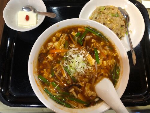 『孔府家宴』の詳細は以下の記事を参照↓ https://gurunabb.hatenablog.com/entry/2020/09/20/100051 酸ラーメン半炒飯セット セットメニューで酸辣湯麺ならぬ酸ラーメンと半炒飯のセットを頂く。 いわゆる酸辣湯麺と思わしき麺物と半炒飯、そして杏仁豆腐の…