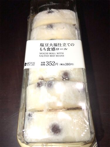 塩豆大福仕立てのもち食感ロール 甘味 ★★★★塩味 ★★★酸味 ★苦味 ★★食感 ★★★★90点 ローソンウチカフェシリーズから自慢の“もち食感ロールシリーズ”より新作が登場。 表面に塩豆を含んだ求肥生地、その内側にはスポンジロールケーキ、それらが生クリームとあん…