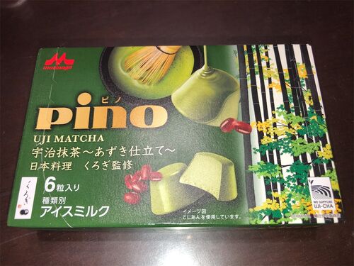 森永乳業pino ピノ 宇治抹茶〜あずき仕立て〜 95点 一口アイスの代表作である“ピノ”と、予約の取れない日本料理店『くろぎ』がコラボしたアイス。 円柱錐型のアイスは、宇治抹茶のやや重みのある緑が鮮やか、外側を抹茶チョコレートでコーティング、そして中…