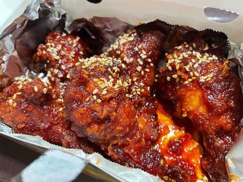 『扶餘 プヨ』の詳細は以下の記事を参照↓ https://gurunabb.hatenablog.com/entry/2021/06/17/100000 激辛ヤンニョムチキン 95点 韓国式フライドチキンを激辛に仕上げたメニュー。 鶏手羽元を揚げ、コチュジャンや砂糖、ニンニクらのベースに加え、さらに唐…