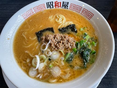 『らーめん昭和屋』の詳細は以下の記事を参照↓ https://gurunabb.hatenablog.com/entry/2021/10/22/100000 坦々麺(細麺・あっさり) 麺 ★★★★ ス ★★★★ 肉 ★★★ 玉 他 ★★★★ 90点 ラーメンメニューのひとつ。 白いお椀に緑のほうれん草など、他とは異なるルック…