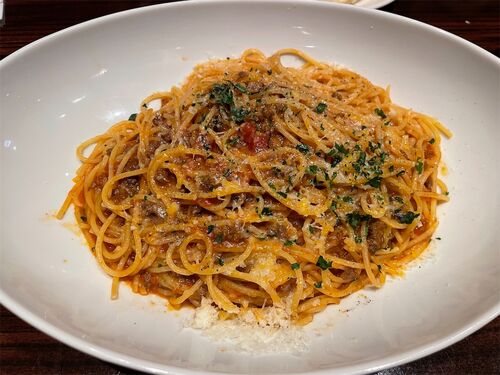 『北海道イタリアン ミア・アンジェラ』の詳細は以下の記事を参照↓ https://gurunabb.hatenablog.com/entry/2023/03/13/100000 北海道産牛肉100%の自家製ミートソース 95点 パスタメニューのひとつ。 定番のミートソースを北海道産の牛肉をたっぷり使用して…