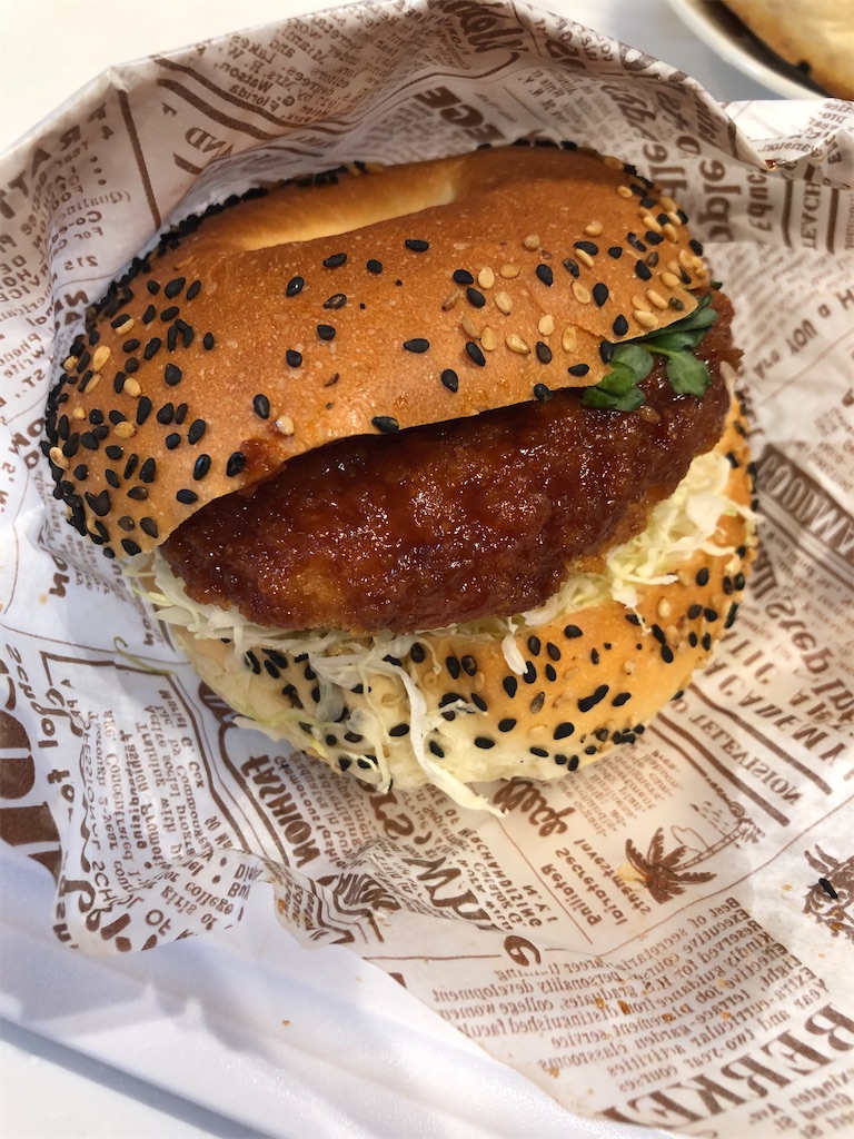 バンズはふかふかで柔らかく、歯に吸い付く様な弾力と質感、胡麻の香ばしさとほろ苦さが爽やかな風味を生む。