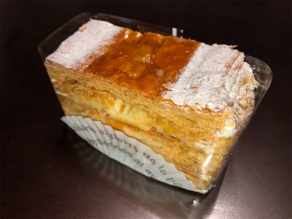 パイ生地とカスタードクリーム、生クリームが層を成し、パイ、クリーム、パイ、クリーム、パイという計5層にて登場。